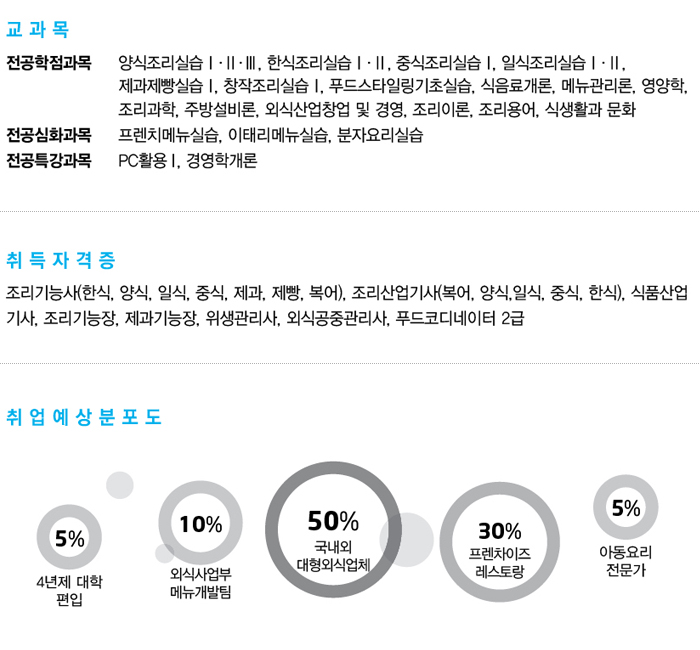 4년제 대학편입(식품영양학과, 식품조리학과, 식품가공학과, 외식경영학과 등) 및 대학원 진학, 전통음식문화 연구원, Cooking School 강사 )