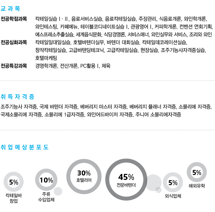 호텔리어(칵테일바, 라운지바), 전문 칵테일바, 전문 위스키바, 칵테일 교육기관, 주류수입업체, 해외호텔 & 리조트, 전문 와인바, 와인전문점, 와인수입업체, 4년제 편입