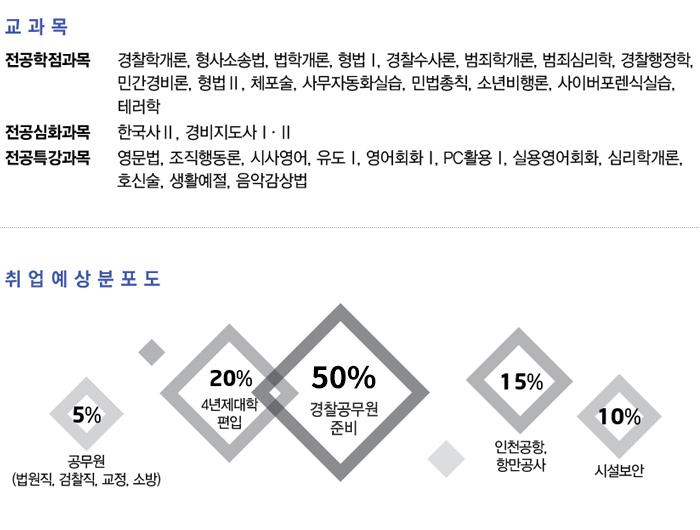 각 시도 경찰청(경찰공무원), 101경비단, 경찰특공대, 국가정보원, 경호관련업체, 보안회사, 공항경비대, 4년제 편입 등