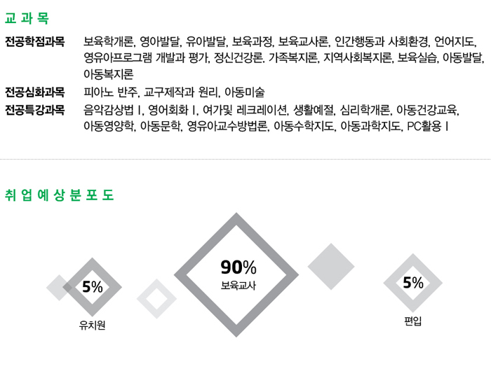 국/공립어린이집, 사립유치원, 민간어린이집, 아동상담소, 아동심리치료소, 보육원, 아동복지기관, 방과후 프로그램교사, 4년제 대학 편입 등