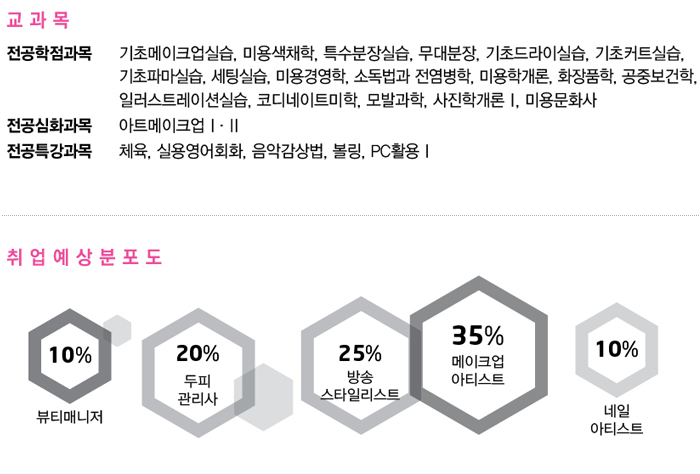 헤어스타일리스트, 피부관리사, 메이크업아티스트, 네일리스트, 두피관리사, 메이크업학원 강사, 방송국분장사, 화장품회사 교육강사, 화장품 연구원 및 기획자, 웨딩플래너, 컬러리스트, 이미지컨설턴트, 영화,연극 코디네이터