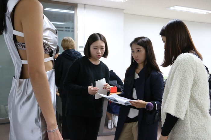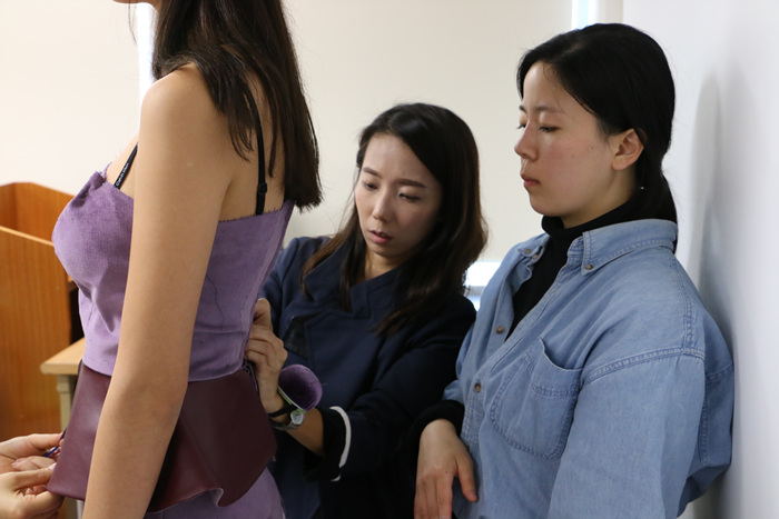 런웨이 무대에 작품을 올리기까지 밤낮으로 고생하며 열정을 쏟아 부었던 결실을 맺는 순간이었습니다. 작품이 완성되기까지 의상제작, 곽현주교수님 멘토수업, 모델피팅 등 많은 과정들이 있는데요, 그 중에서 모델피팅 수업현장을 찾아가 어떻게 진행되는지 낱낱이 파헤쳐 보겠습니다.
