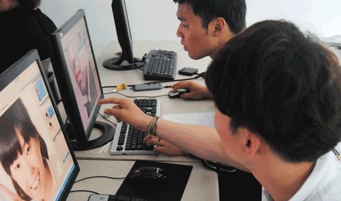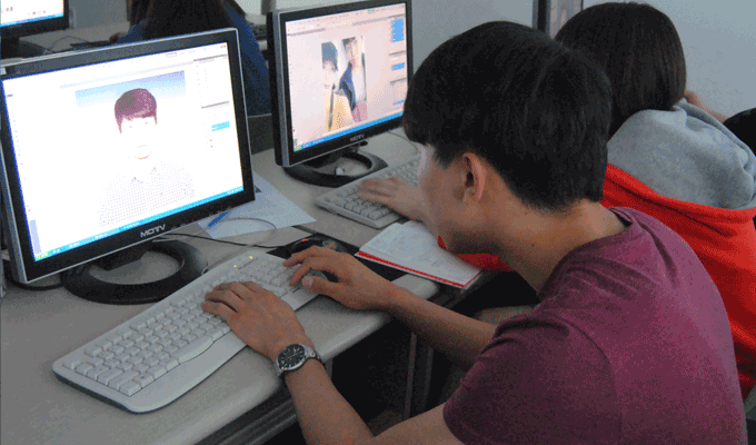 사진을 골라 포토샵으로 성형효과를 준다. 서로 수정할 부분들을 알려주며 피드백을 공유했다.