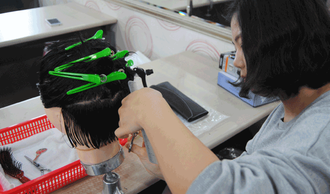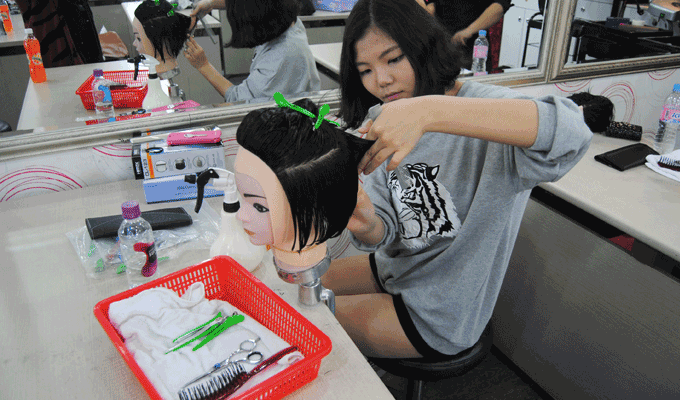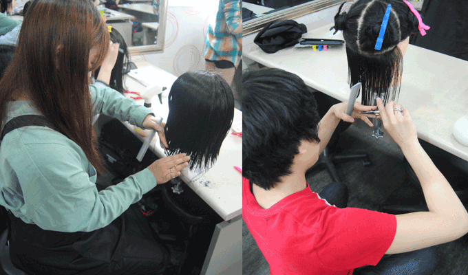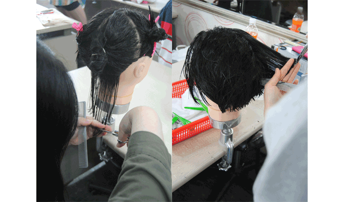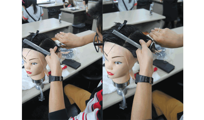 이사도라컷, 남성디자인컷 두가지 방법의 커트를 실습했습니다. 학생들의 집중이 대단했습니다. 교수님의 지도하에 잘못된 부분들이 수정되어가며 실습이 이루어졌습니다. |