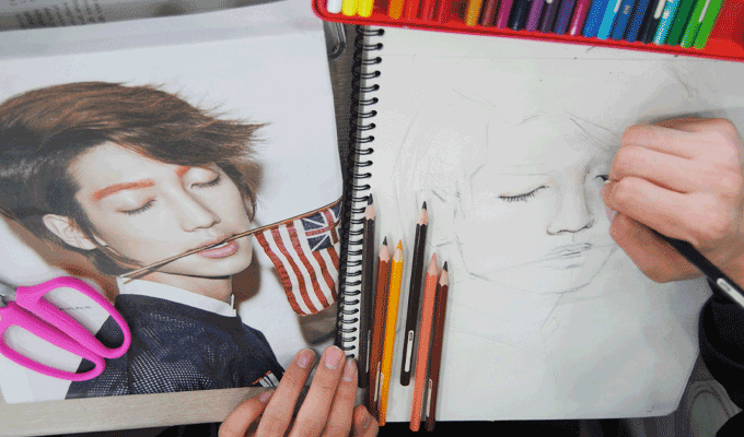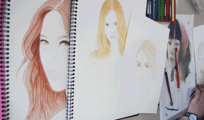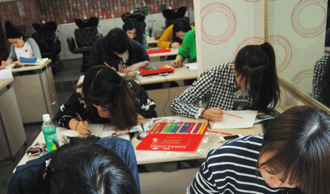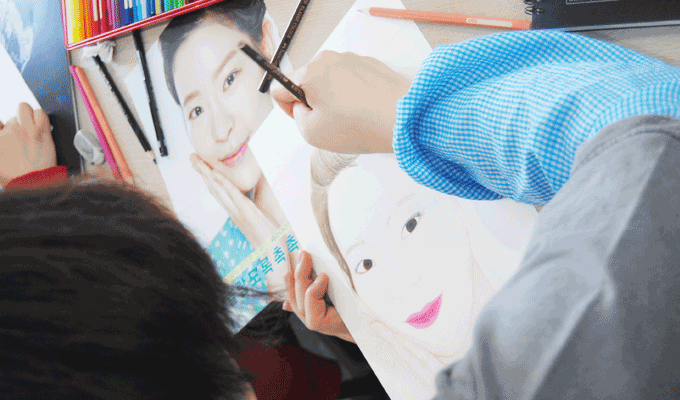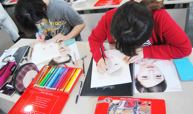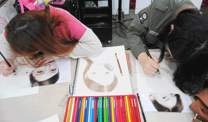 이 수업은 표현력을 향상시키기 위한 실습입니다. 피부미용&방송스타일리스트전공 학생들의 수업이였습니다. 헤어스타일링, 메이크업 등 표현력의 향상과 메이크업 전 미리 아이디어스케치를 할 수 있기 위한 과정 중 하나입니다. 사진을 보고 스케치를 하며 색을 입히는 과정을 통해서 자신이 하고자 하는 메이크업과 스타일링의 컨셉을 조화시킬 수 있도록 훈련하는 실습이였습니다. 학생들은 자신들이 선택한 사진을 보고 따라 그리며 섬세한 메이크업 표현과 감각을 익혔습니다.
