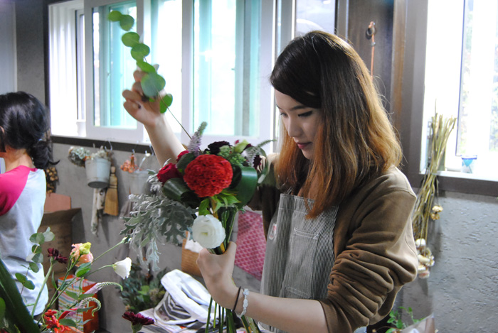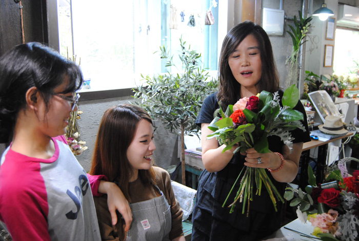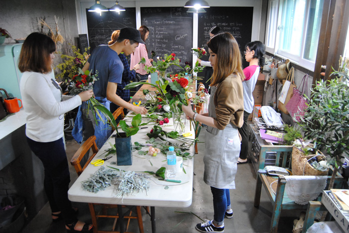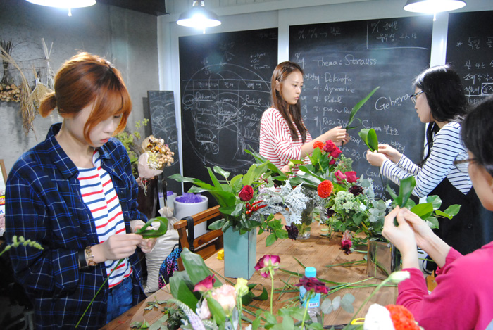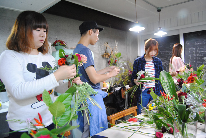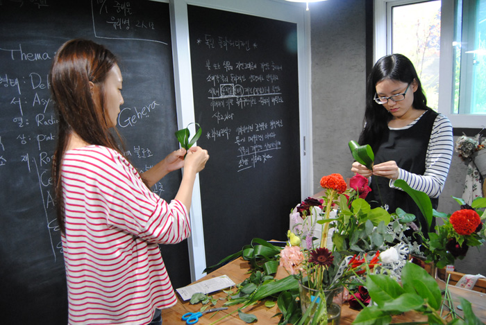 '벤자민&데이지'를 운영하고 계시는 교수님께서 진행하시는 수업으로 학교와 직접 운영하고 계시는 샵을 오가며 플라워디자인 수업을 진행하고 있습니다.