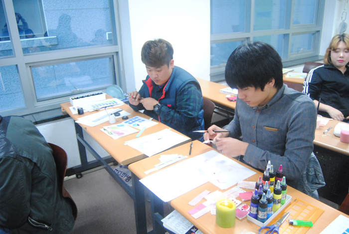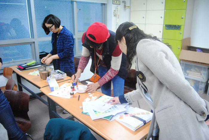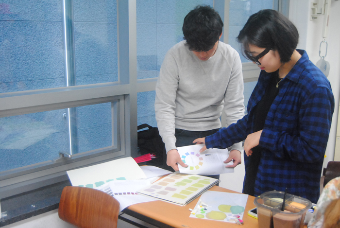 이날 수업은 컬러표현의 기초인 명도와 채도를 물감으로 표현하며 명도와 채도를 이해하는 시간을 가졌다. - 디자인예술계열 인테리어디자인전공 - 본관 505호 |
