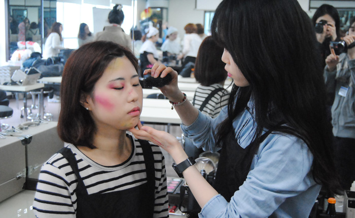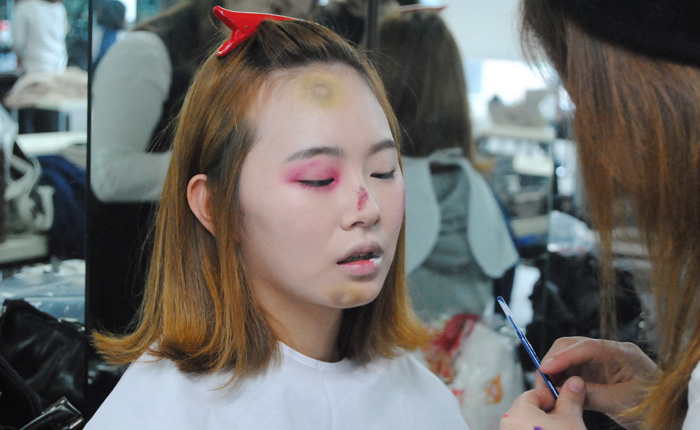 메이크업전공에서는 기본적인 메이크업뿐만 아니라 특수분장 수업이간이 있다.