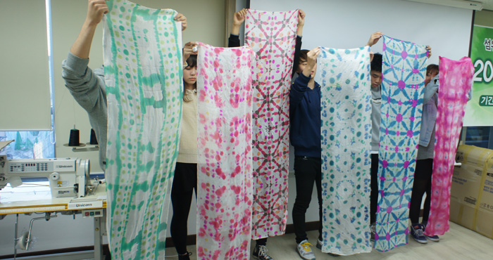 패션디자인 아트관에서 Textile 실기연수가 있었습니다. 섬유 디자인 및 섬유 염색 제작 실기를 통해 각자의 스타일을 살려 스카프를 만들어 보았습니다.