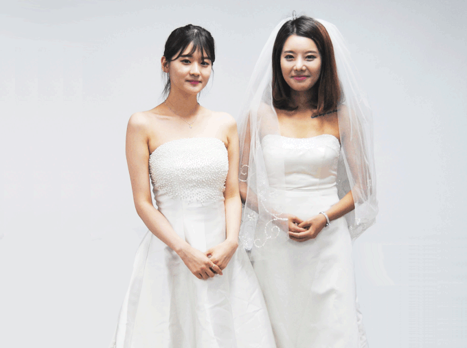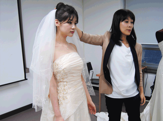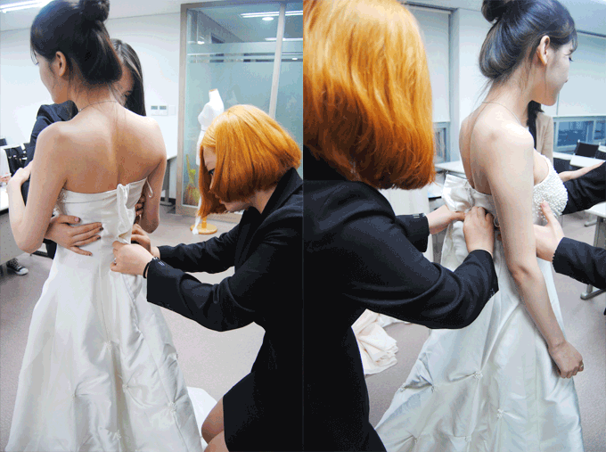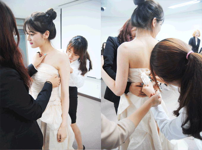 1,2학년이 함께 모여서 웨딩드레스를 피팅해보는 연습을 했습니다.